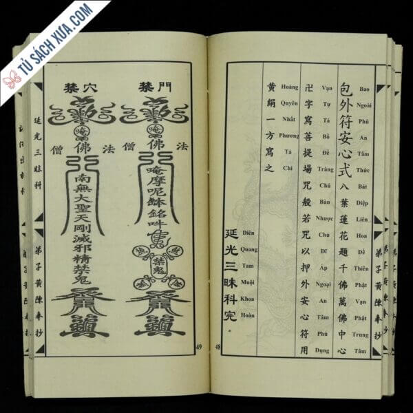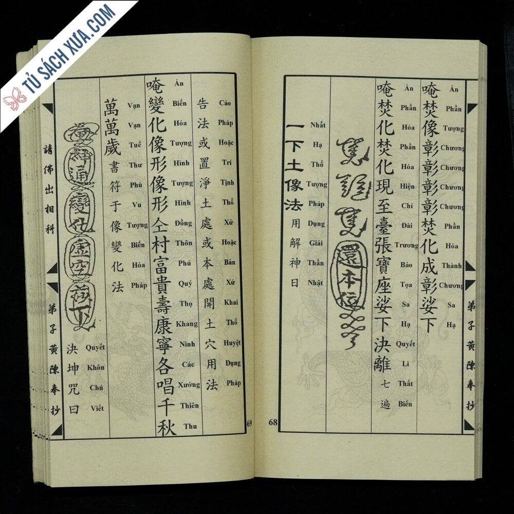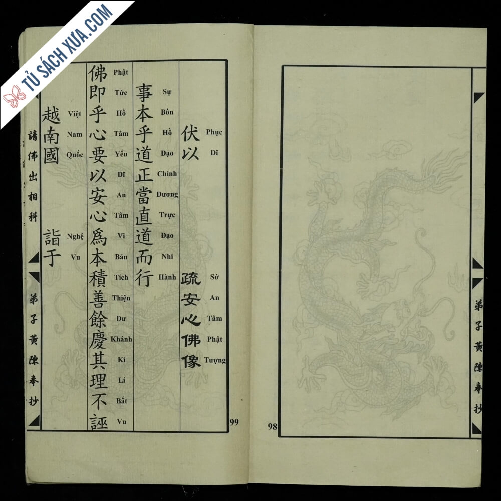 Sách được khâu thủ công theo lối cổ, giấy xuyến chỉ hoặc giấy trắng cổ gấp đôi, đọc ngược từ phải sang, khâu gáy bằng chỉ dù, quét keo, tem sách chống xước, mực in chống nước không phai màu, số lượng chỉ có vài cuốn.