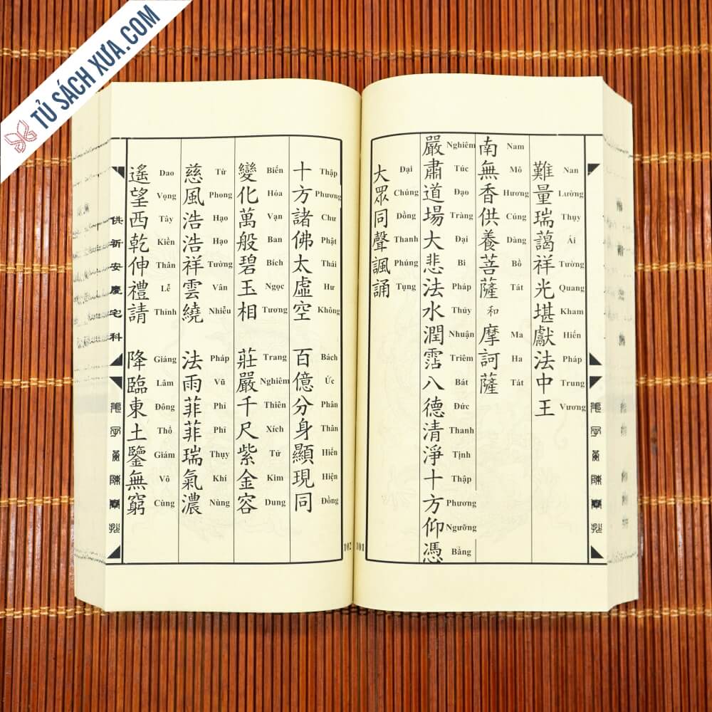 Sách được khâu thủ công theo lối cổ, giấy xuyến chỉ hoặc giấy trắng cổ gấp đôi, đọc ngược từ phải sang, khâu gáy bằng chỉ dù, quét keo, tem sách chống sước, mực in chống nước không phai màu, số lượng chỉ có vài cuốn.