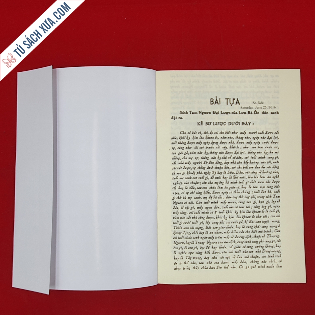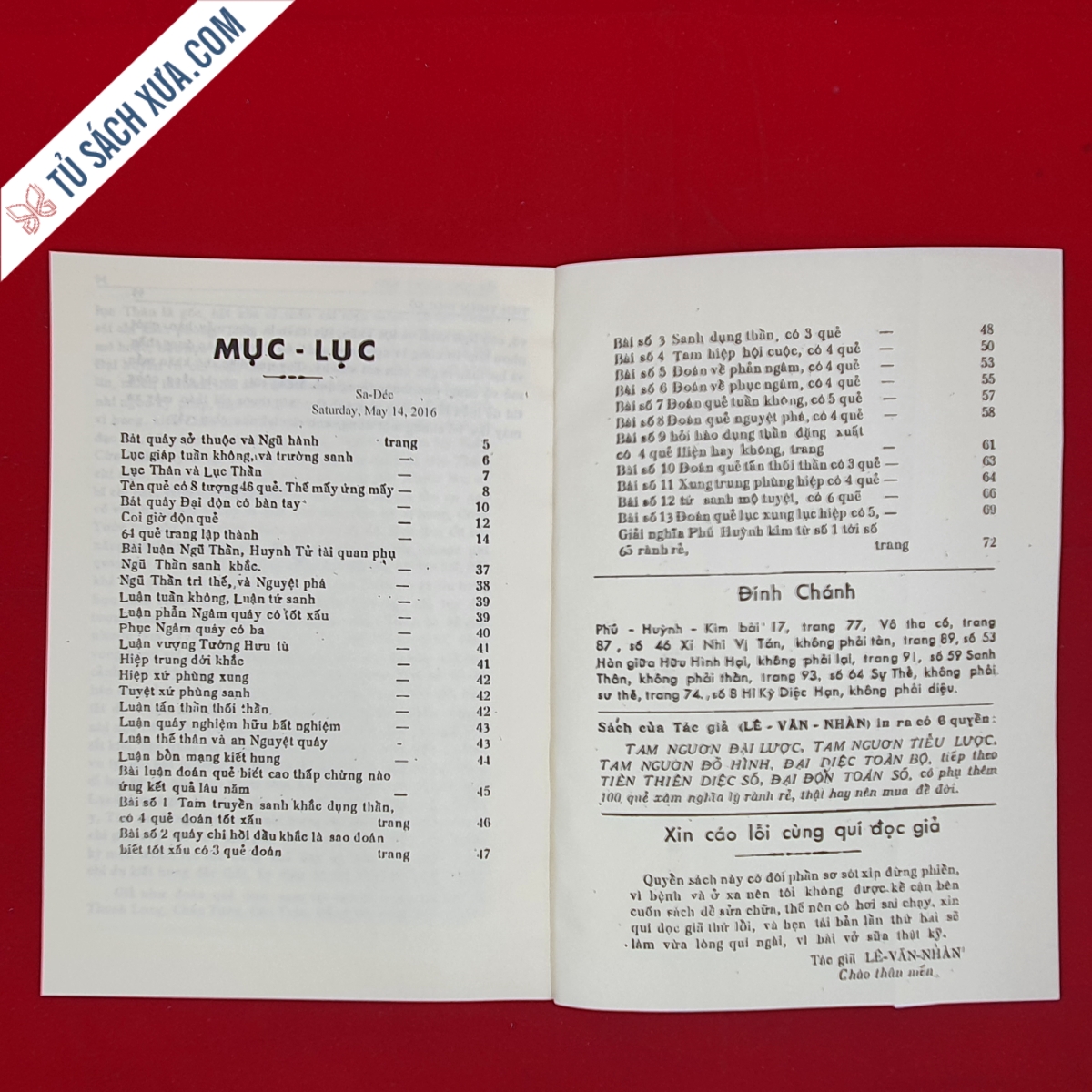 Sách nay dễ dùng trong gia-đình, 180 năm, cho tớí đời con, cháu, chắt, năm nào cũng không sai, mua được cuốn sách nầy, cũng như có ông thầy ở trong nhà vậy, hễ dở ra thì biết. Tác giả có chỉ rành rẽ, coi thì biết, dễ hiểu lắm, có chỉ đủ, khỏi đi tới Thầy mất công lại tốn tiền.