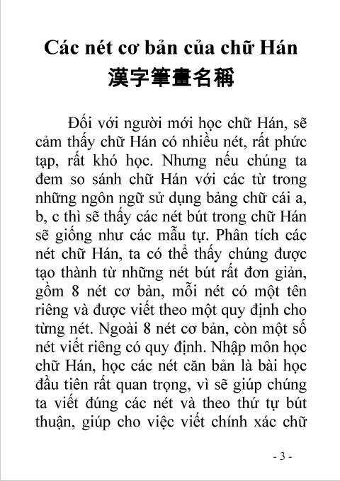 Phân tích các nét chữ Hán, ta có thể thấy chúng được tạo thành từ những nét bút rất đơn giả, gồm 8 nét cơ ban, mỗi nét có một tên riêng có quy định. Nhập môn học chữ Hán, học các nét căn bản là bài học đầu tiên rất quan trọng, vì sẽ giúp chúng ta viết đúng các nét và theo thứ tự bút thuận, giúp cho việc viết chính xác chữ Hán, và đếm chính xác số lượng nét viết của một chữ và từ đó giúp việc tra cứu từ điển chính xác và nhanh chóng hơn.