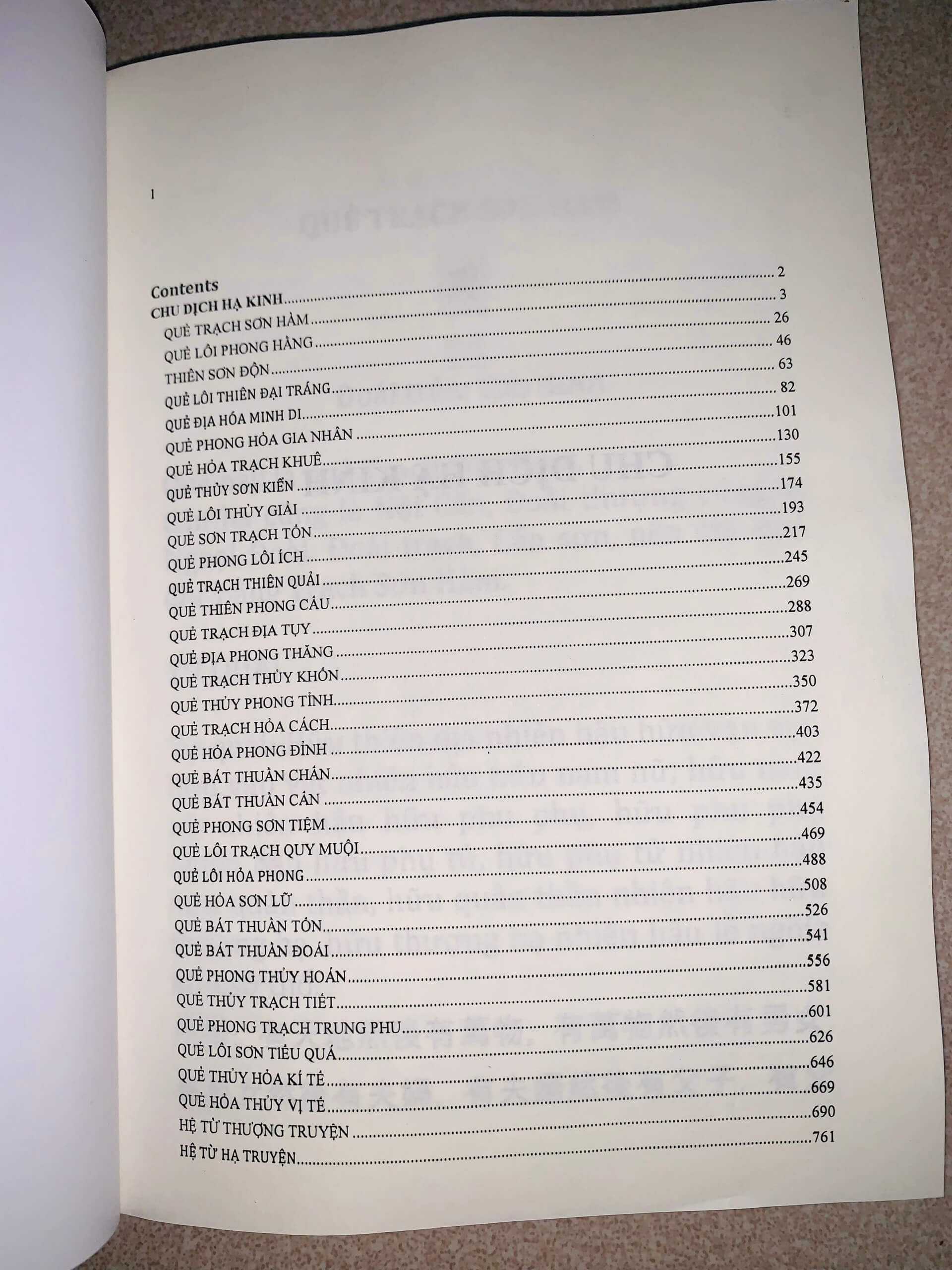 Toàn bản Chu dịch quốc văn này có 10 quyển nhỏ đầu từ quẻ càn, sau đến quẻ vị tế, gồm 64 quẻ, Hào từ, Tượng, Soán, đều có giải nghĩa và bình luận một cách rõ ràng.