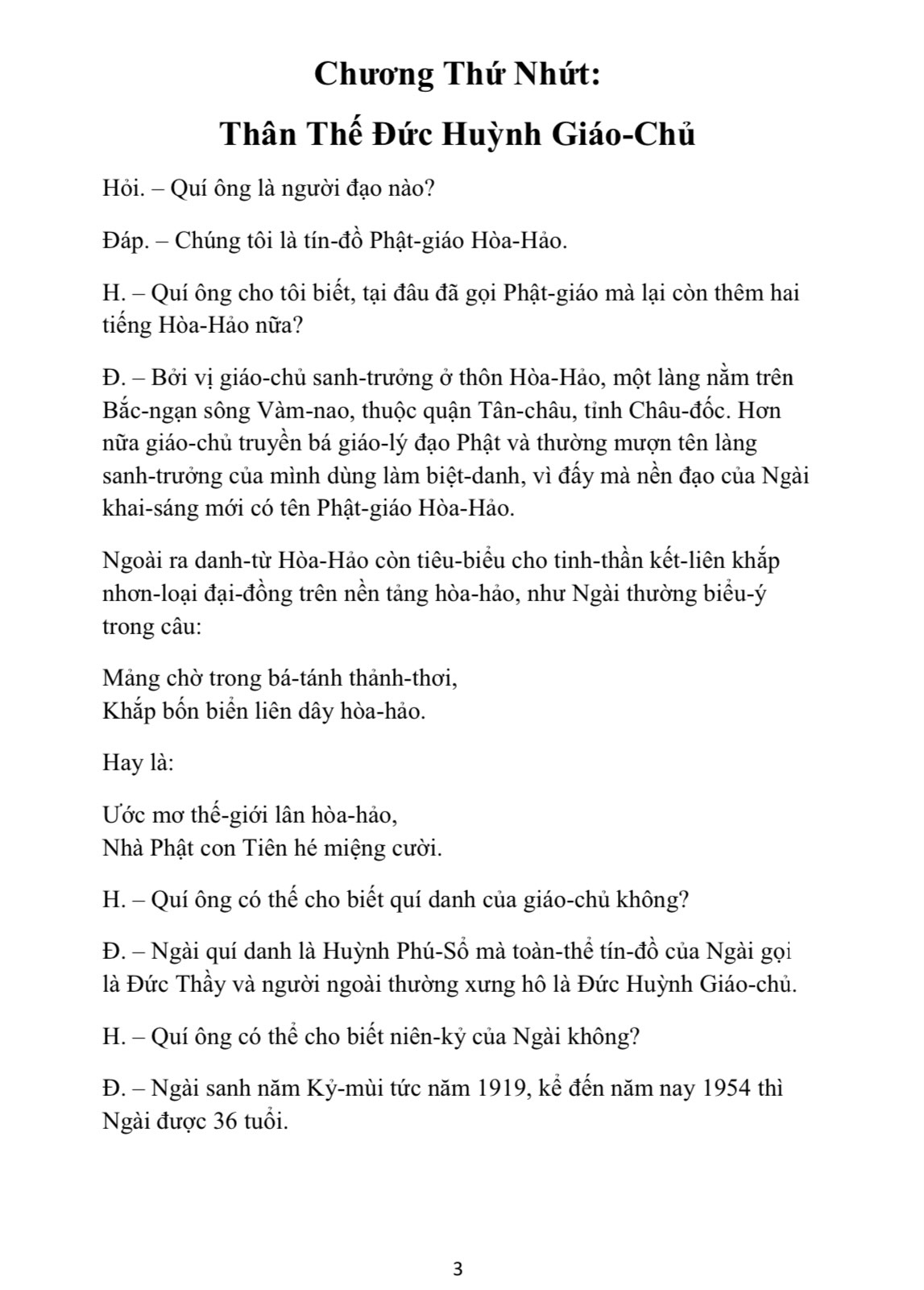 Chúng tôi đã từng tiếp-xúc rất nhiều người trong các giới, lúc đàm-thoại có nêu ra nhiều nghi-vấn về Đạo Phật-giáo Hòa-Hảo. Chúng tôi nhận thấy nhiều câu hỏi rất lý-thú đáng được ghi chép để thay vì trả lời cho những người sắp hỏi hay chưa hỏi. Muốn cho câu hỏi có mạch-lạc, chúng tôi cần xếp thành một hệ-thống tư-tưởng, đương-nhiên có những câu chưa hỏi mà chúng tôi phải đặt thêm.