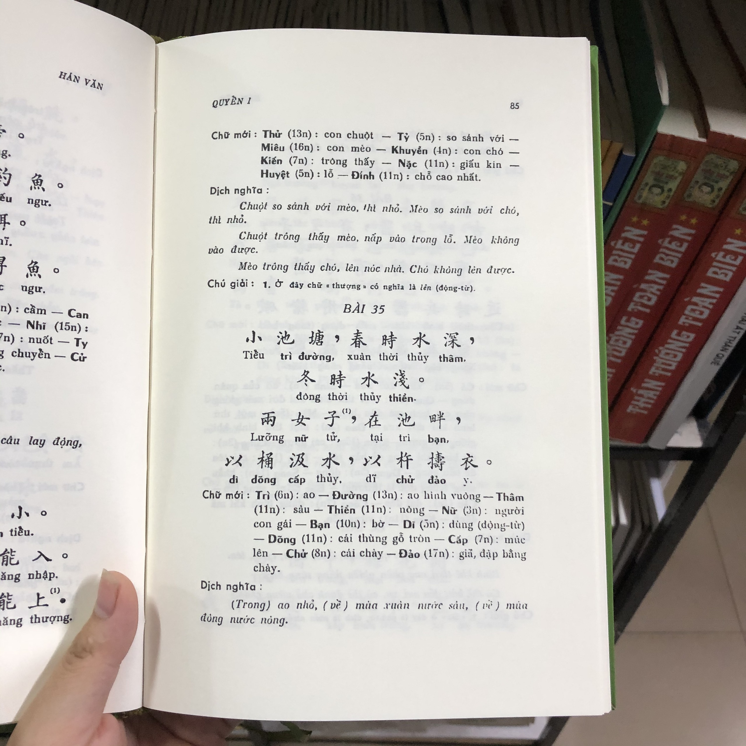 - Các bài trích trong sách “Tân Quốc – văn” của Thượng – Vụ ấn thư quán, xếp theo thứ tự từ dễ đến khó trong 4 quyển. Trong mỗi bài có các phần: câu hay bài trích, phiên âm, học chữ mới, chú giải và dịch nghĩa.