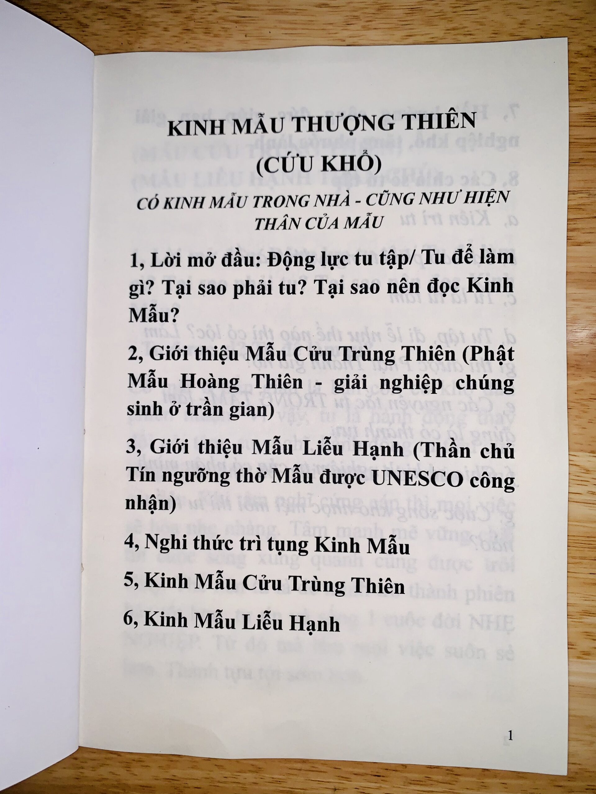 Bộ kinh này là tông chỉ tu hành cho con nhang đệ tử thanh đồng. Lời Mẫu sang tai cho người đồng tử biên chép lại. Tu trong hoàn cảnh hiện đại như thế nào cho hợp phép thánh, giữ gìn Đạo Mẫu nước nhà.