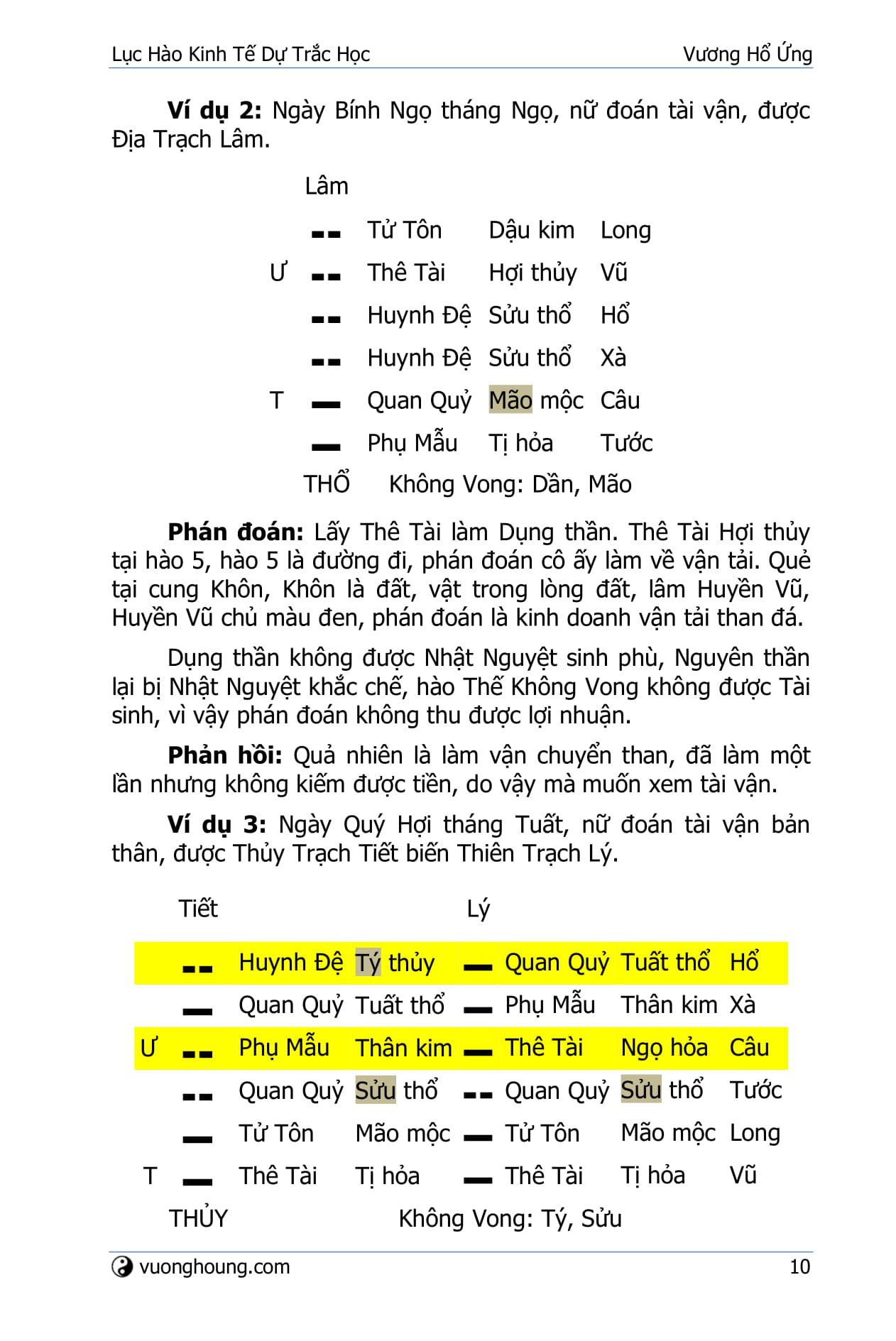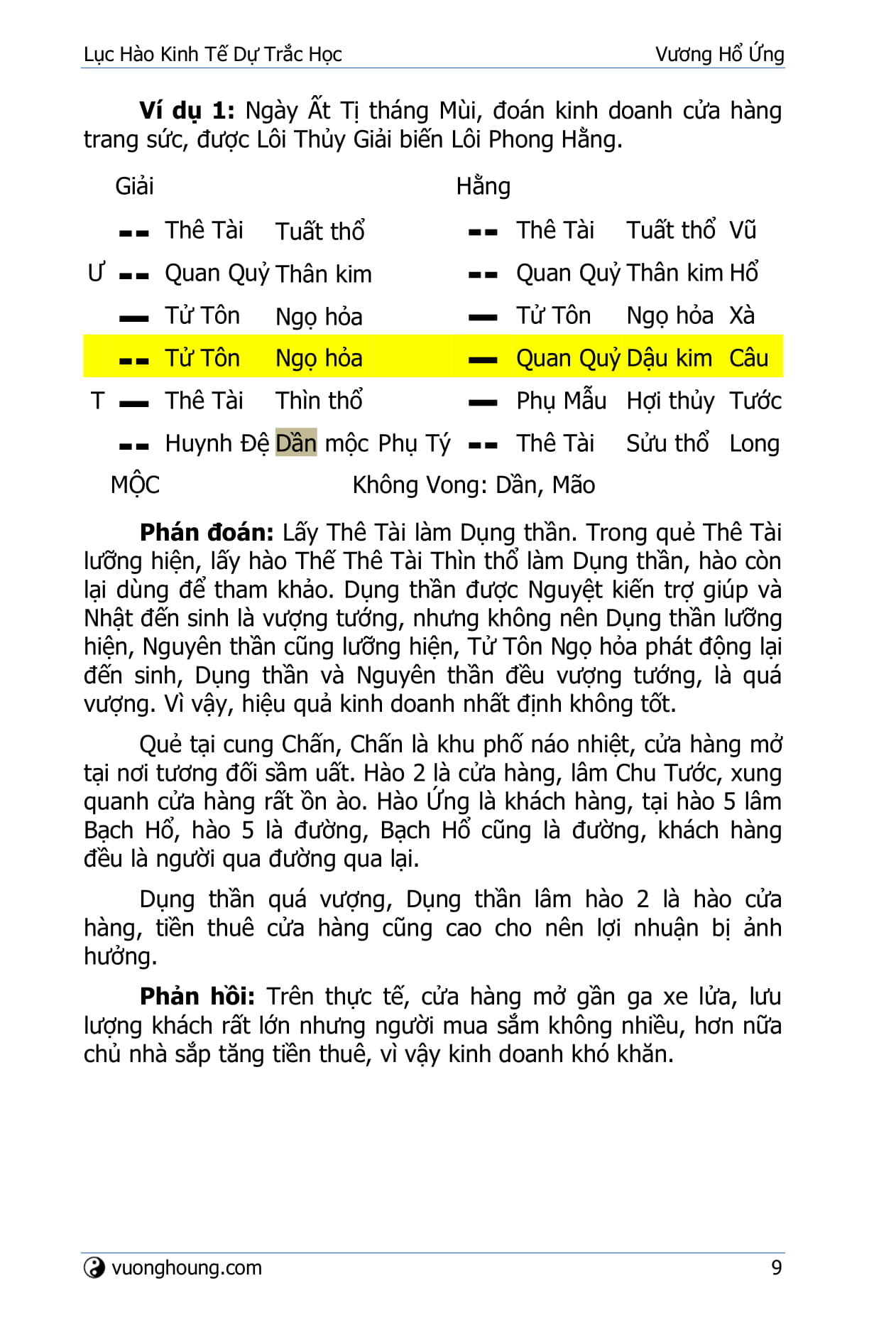 Qua nhiều năm nghiệm chứng trong thực tiễn, tôi nhận thấy dự đoán lục hào có thể mang lại tác dụng hướng dẫn rất lớn. Tỷ lệ chính xác cũng rất cao, hoàn toàn đáng tin cậy. Hy vọng rằng, sau khi xem cuốn sách này thì mọi người sẽ có thể nâng cao trình độ dự đoán, giúp cho nhiều người thoát khỏi những khó khăn về kinh tế, đem lục hào phục vụ cho xã hội. Vương Hổ Ứng