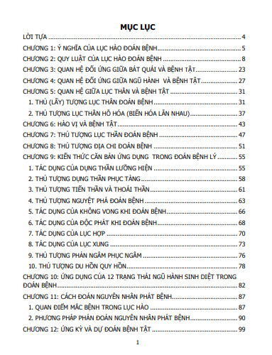 CHƯƠNG 1: Ý NGHĨA CỦA LỤC HÀO ĐOÁN BỆNH