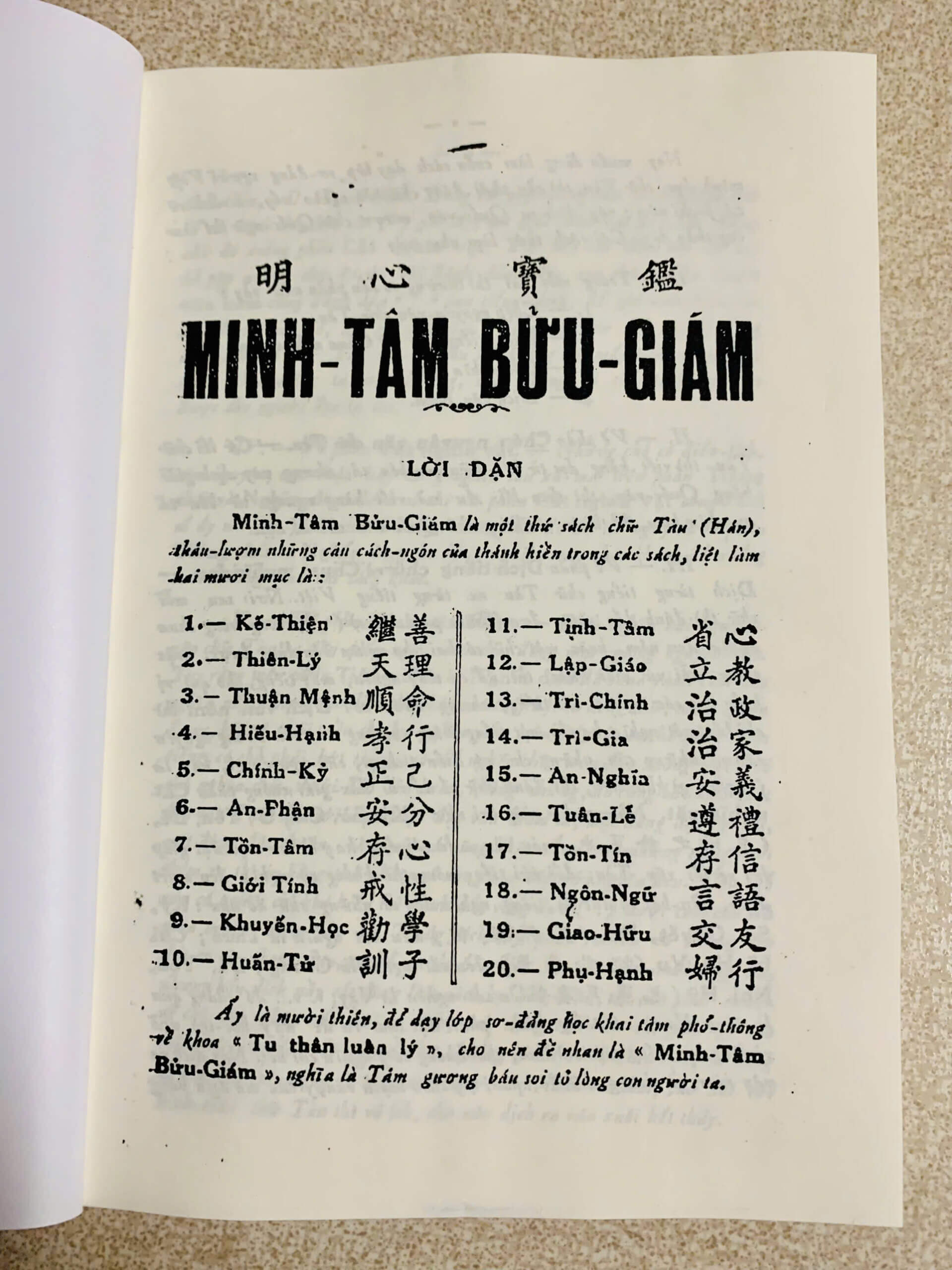 Sách: MINH TÂM BỬU GIÁM (NXB TÍN ĐỨC THƯ XÃ 1950) – TRƯƠNG VĨNH KÝ – 335 TRANG