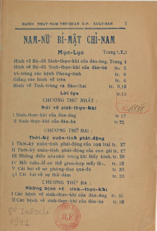Sách: NAM NỮ BÍ MẬT CHỈ NAM – SOẠN GIẢ NGUYỄN AN NHÂN – XUẤT BẢN NĂM 1933