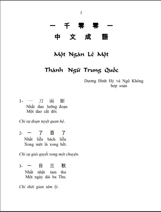 Sách: NGÀN LẺ MỘT THÀNH NGỮ TRUNG QUỐC – 200 TRANG