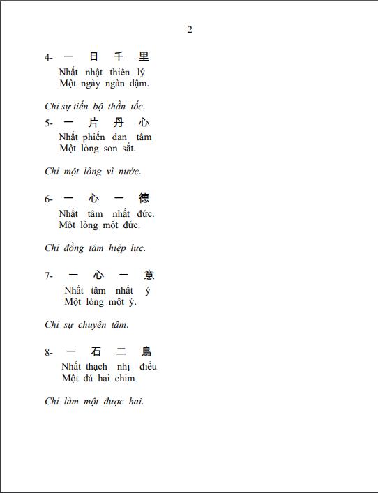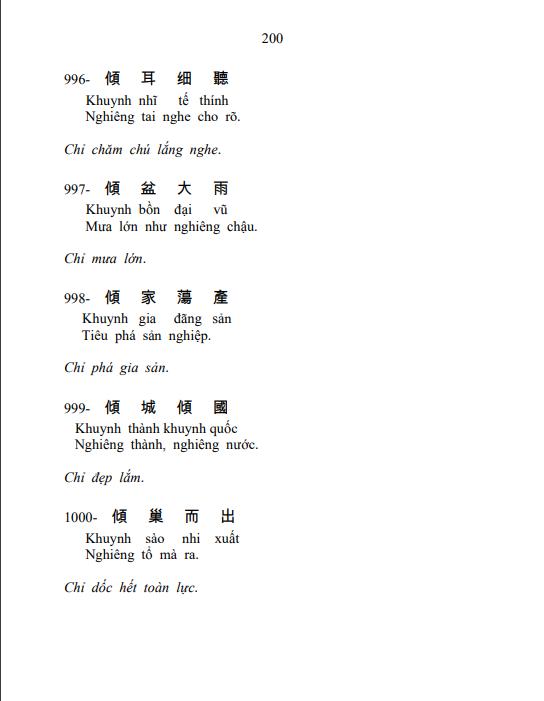 Đây là cuốn sách tập hợp hơn ngàn thành ngữ Trung Quốc giúp cho việc học chữ Hán trở nên thi vị hơn rất nhiều. Ngoài ra, việc am hiểu thành ngữ còn giúp cho việc tiếp thu ý tứ trong văn chương sách vở được đầy đủ hơn.