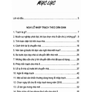 Nhằm giới thiệu thêm với bạn đọc một số kinh nghiệm trong dân gian về việc thực hiện các nghi lễ nhập trạch, khai trương khi về nhà mới hoặc nơi kinh doanh mới, chúng tôi xin giới thiệu cuốn sách “Nghi lễ dân gian – Nhập trạch, khai trương“. Hy vọng cuốn sách này sẽ giúp quý bạn có thêm nhiều kinh nghiệm bổ ích khi thực hiện những việc cần làm trước khi chuyển vào nhà mới, cách thực hiện nghi lễ nhập trạch, khai trương cửa hàng, văn phòng, công ty… nhằm hướng tới sự thịnh vượng cát tường và an lành cho gia chủ.