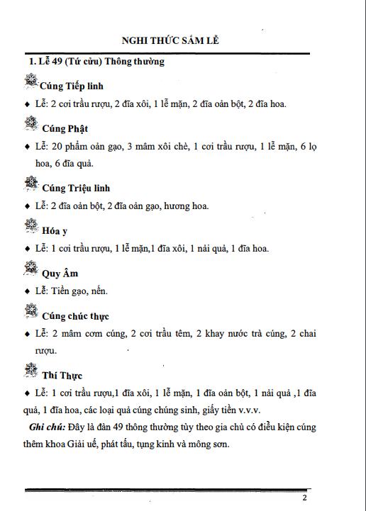 1 . Lễ 49 (Tứ cửu) Thông thường