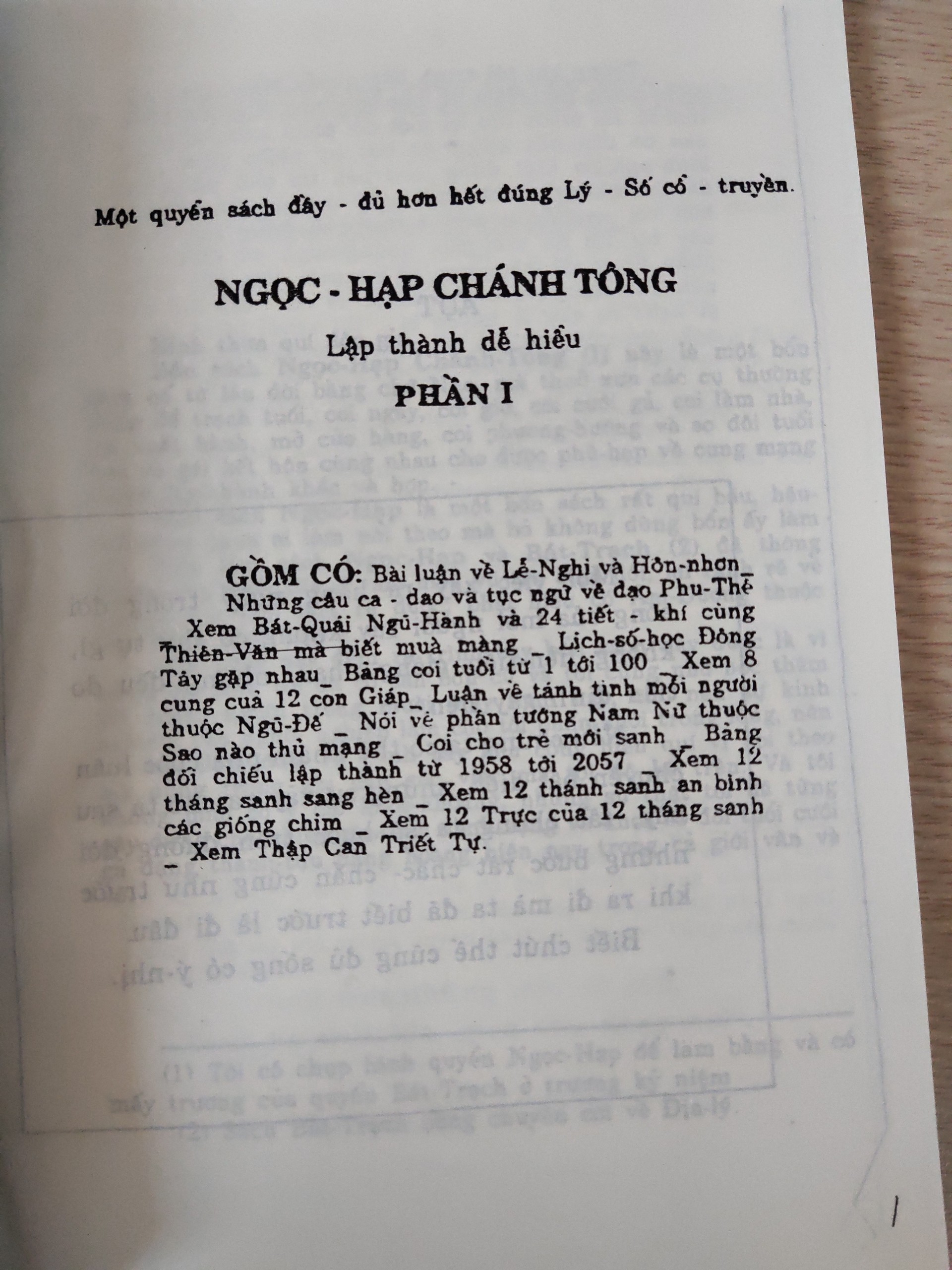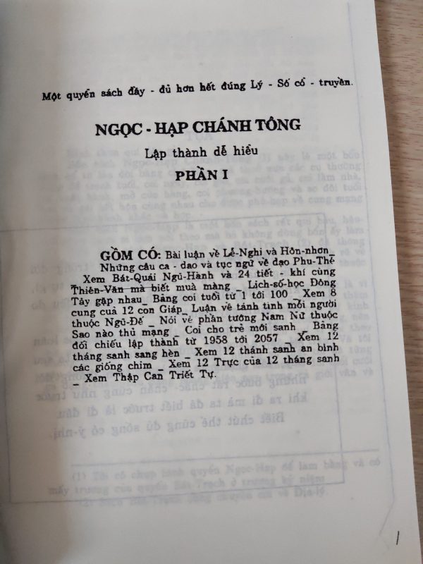 Cuốn sách một bổn sách cổ từ lâu đời bằng chữ Nho, mà thuở xưa các cụ thường dùng để trạch tuổi, coi ngày, coi giờ, coi cưới gả, coi làm nhà, coi xuất hành, mở cửa hàng, coi phương hướng và so đôi tuổi trai và gái kết hôn cùng nhau cho được phù hạp về cung mạng thuộc Ngũ hành khắc và hạp.