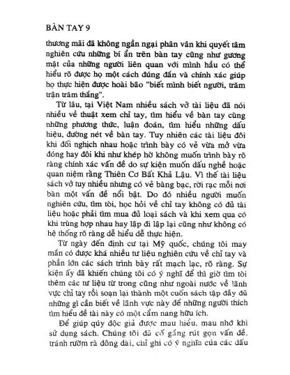 Chúng tôi hy vọng tập sách này sẽ đóng góp một phần trong việc nghiên cứu, tìm hiểu cũng như thực hành về khoa xem chỉ tay. Hy vọng không những quý vị có thể tự tìm học được nhanh mà còn có khả năng xem cho chính mình và cho người khác.