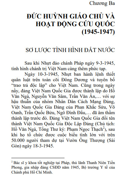 – Hoạt động hoằng pháp và cứu quốc của Đức Huỳnh Giáo Chủ,