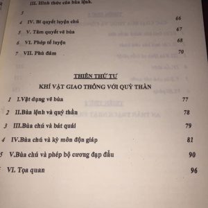 -Thiên thứ ba : Yếu quyết việc học bua chú, bí quyết học bua và những điểm cốt yếu của bua chú, các hình thức bùa lệnh, các dạng thức của bua, bí quyết luyện chú, các vẽ bua và phép tế bua, các tầng thức của bua chú.