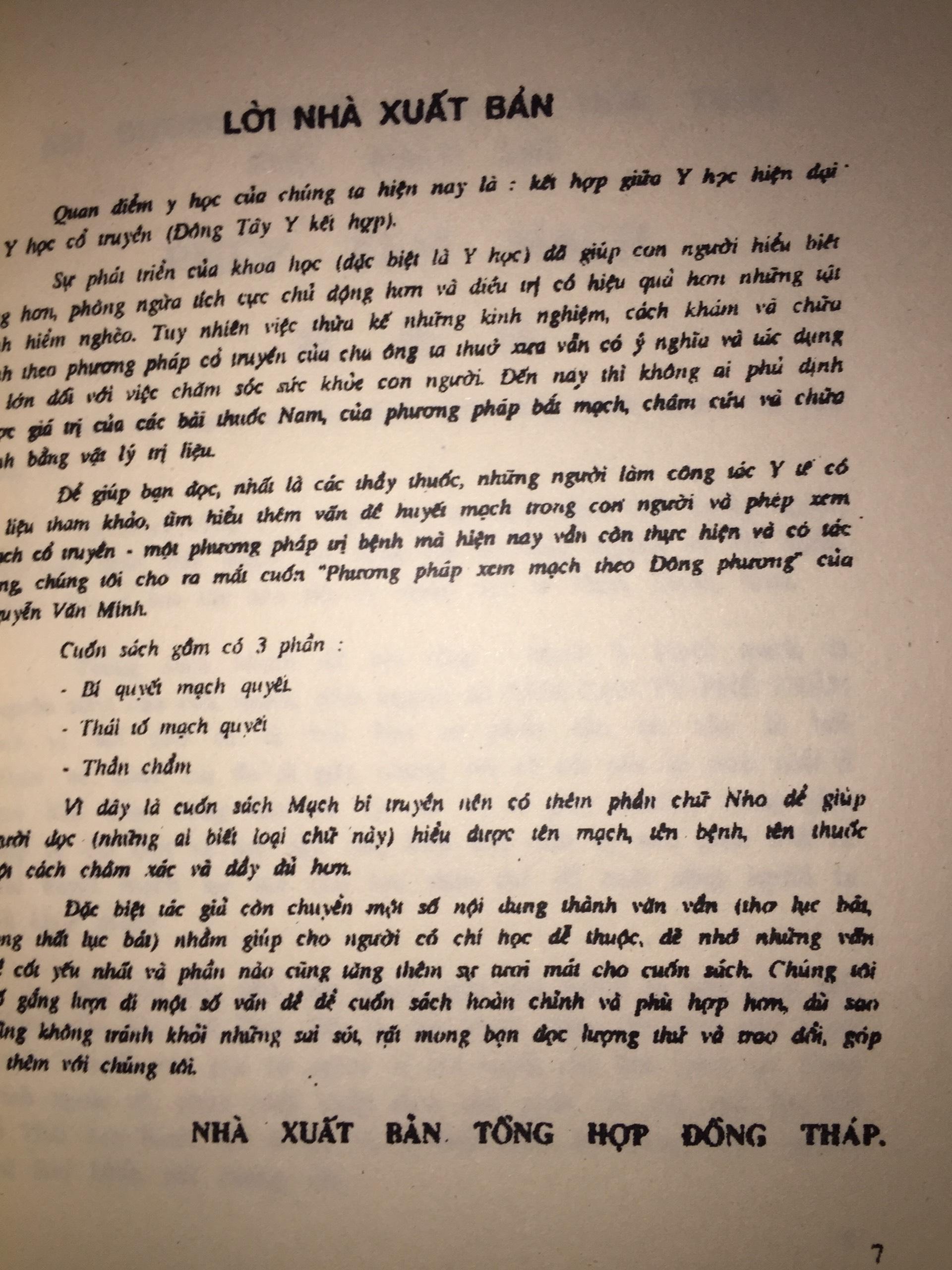 Để giúp bạn đọc, nhất là các thầy thuoc , những người làm công tác Y te có tài liệu tham khảo, tìm hiểu thêm vấn đề huyết mạch trong con người và phép xem mạch co truyền – một phương pháp tri bệnh mà hiện nay vẫn còn có tác dụng, chúng tôi cho ra mắt cuốn “Phương pháp xem mạch theo phương đông” của Nguyễn Văn Minh.