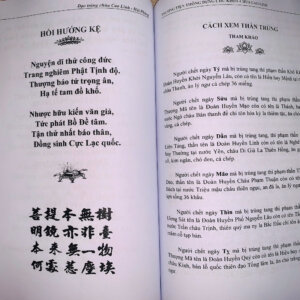 • Tài năng của soạn giả, sáu phần rưỡi, đặt ở nơi Chú thích. Mỗi một từ, soạn giả đều giải thích ,ý nghĩa, dẫn chứng xuất xứ, trường hợp áp dụng, rút nơi các kinh điển Phật giáo, Tứ Thư Ngũ Kinh, Đạo tạng, trong những áng văn thơ bác học, trong tập tục bình dân, v.v…,