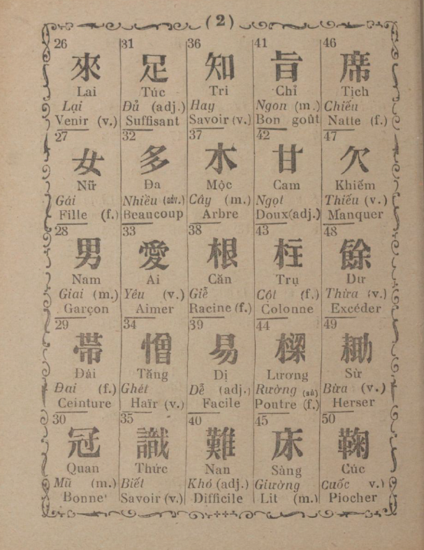 Quyển sách này không những có ích cho sự học chữ Hán, lại tiện lợi cho người nào muốn học chữ Pháp hay tiếng Nam nữa.