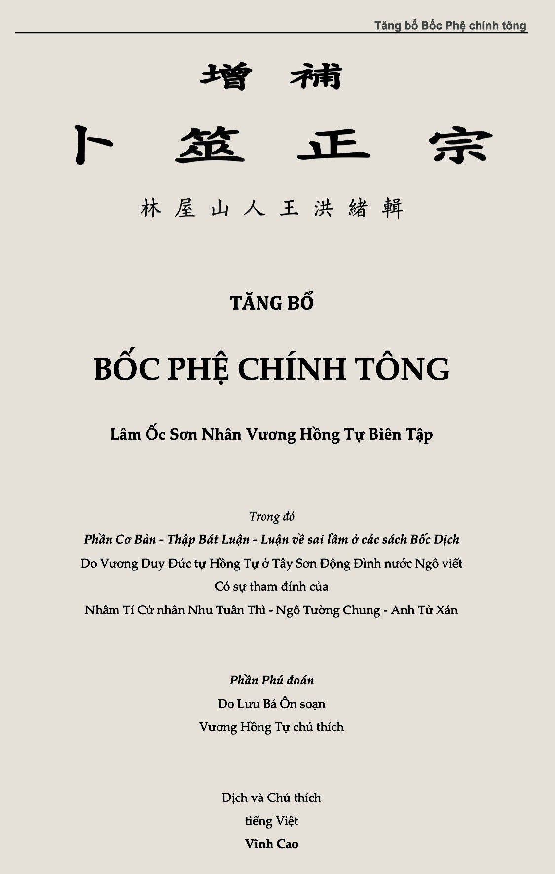 Sách : Tăng Bổ Bốc Phệ Chính Tông – Vương Hồng Tự (Dịch Vĩnh Cao) Bìa Mềm