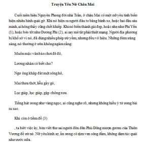 “Cuối niên hiệu Nguyên Phong đời nhà Trần, ở Châu Mai có một nữ yêu tinh biến hiện nhiều hình quái gở. Khi nó hiện ra người đầu to bằng bánh xe, hoặc hai đầu sáu mình, ai trông thấy cũng chết khiếp. Khi nó biến thành gái đẹp, hoặc nhẹ như Phi Yến, hoặc béo tốt như Dương Phi, ai say mê tất phải thiệt mạng. Người địa phương bị khổ sở vì nó, đã dùng nhiều phép trừ yểm nhưng đều vô hiệu. Những đêm trăng sáng, nó thường ở trên không, ngâm rằng: