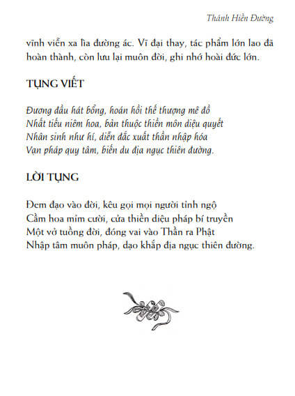 Để chúng ta hưởng ứng những lời giảng và vạch cho chúng ta thấy thiên đường là gì? Đi bằng cách nào? Nhân dịp ngày rằm này tâm thức của chúng ta có cơ hội, có duyên lành được hội tụ trong sự bất ngờ trong giây phút này để đọc lên cuốn Thiên Đường Du Kí, cộng với người đã hành trong thực hành và đã cảm thức phân giải để cho trình độ các bạn có thể hiểu nhiều hơn và nắm đó để đi và quên tất cả thế sự để trở về với chơn cảnh đời đời bất diệt mà trong đó có thật, nhơn gian mê lầm, chê, chấp, buồn, tủi, khi mà chúng ta quán thông được thiên đường, thì thiên đường ở đâu? Lúc đó các bạn thấy tâm của các bạn là thiên đường, sung sướng vô cùng.