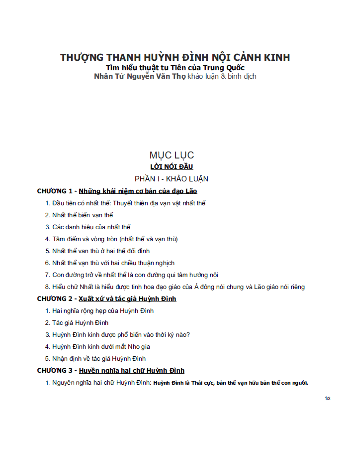 - Chương 6: Ít nhiều nhận định về Huỳnh Đình kinh