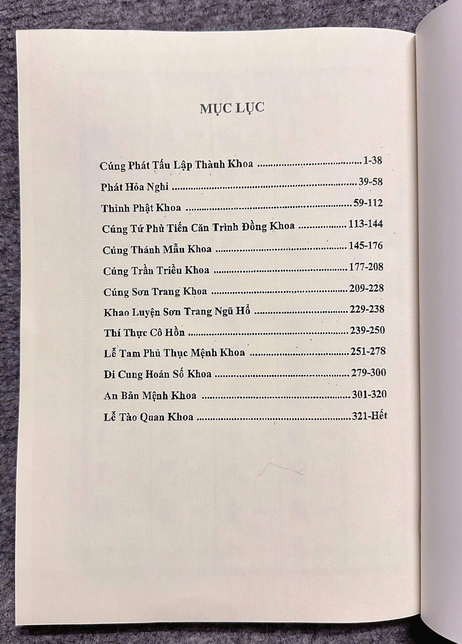 Cuốn sách bao gồm 13 khoa cúng Tứ Phủ thông dụng: