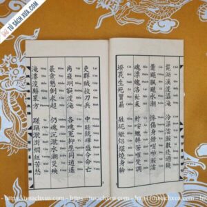 Sách được khâu thủ công theo lối cổ, giấy xuyến chỉ hoặc giấy trắng cổ gấp đôi, đọc ngược từ phải sang, khâu gáy bằng chỉ dù, quét keo, tem sách chống xước, mực in chống nước không phai màu, số lượng chỉ có vài cuốn.