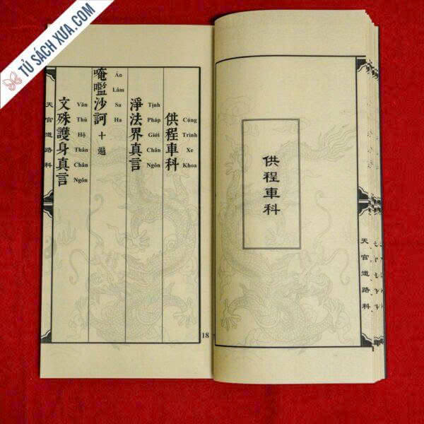 Sách được dùng trong các đàn lễ cúng xe mới, cầu bình an thiên quan đạo lộ, bao gồm các khoa cúng: