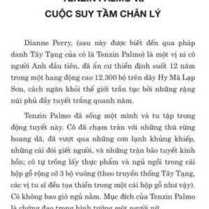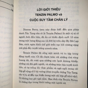 Tenzin Palmo đã kể lại cuộc sống ẩn cư của cô cho Vickie Mackenzie với tất cả lòng nhiệt thành cởi mở. Cô nói về những trở ngại, gian nan cô đã vượt qua, những thôi thúc thử thách mãnh liệt, và những xúc cảm tâm linh mà cô đã chứng nghiệm. Cô cũng có đủ can đảm để trung thực diễn tả những dằng co khắc khoải mâu thuẫn giữa tình yêu trai gái và tiếng gọi nội tâm đầy ân sủng.