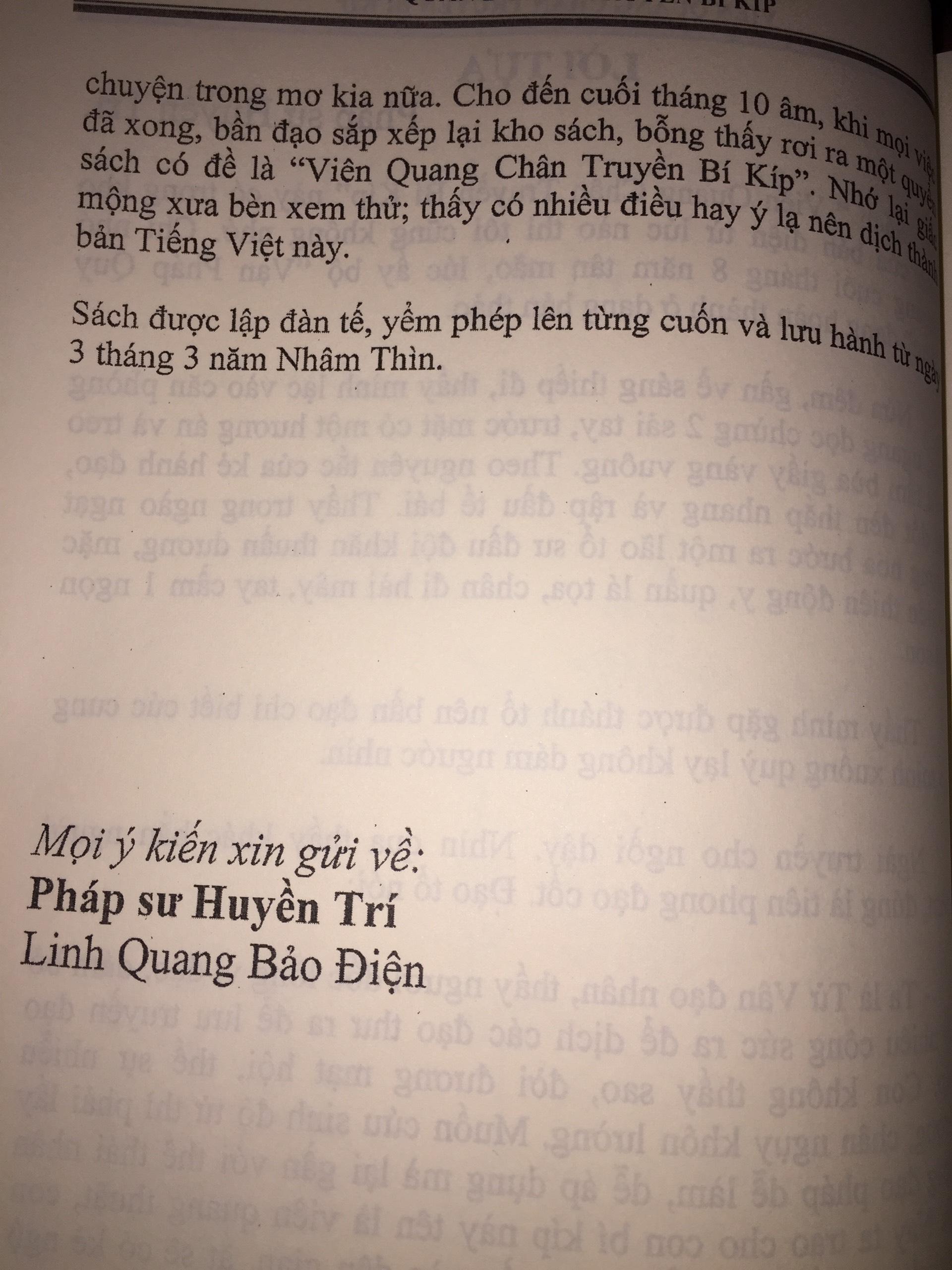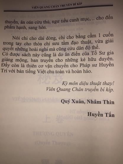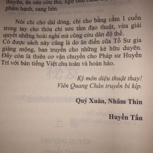 Có được sách này cũng là do ân điển của Tổ Sư gia giáng mộng, ban truyền cho những kẻ hữu duyên. Đấy còn là thiên cơ vận chuyển cho Pháp sư Huyền Trí với bản tiếng Việt chu toàn và hoàn hảo.